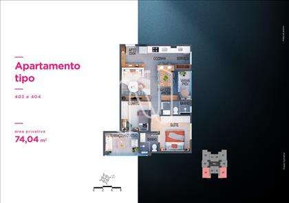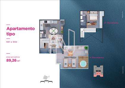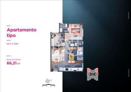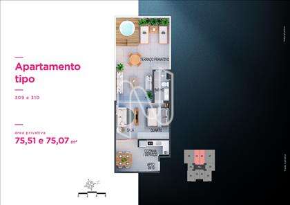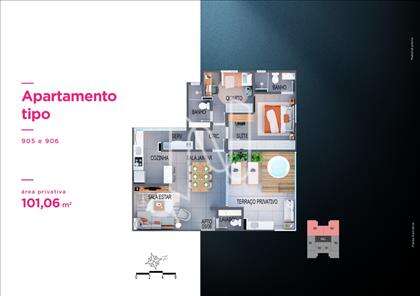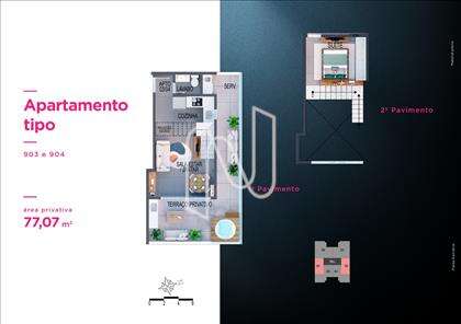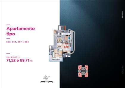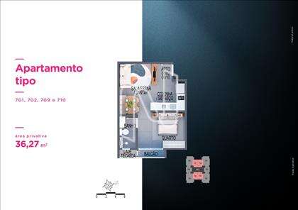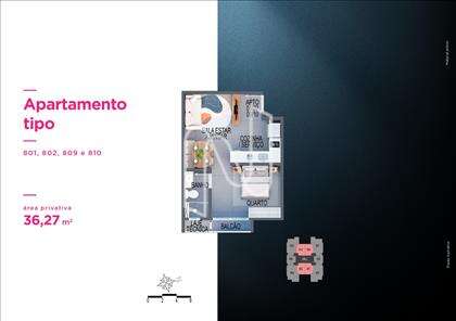 Apto de 1 ou 2 qts de 31 a 102m2, 66 unidades residenciais, lazer diferenciado no Rooftop, 11 pavimentos, 10 unidades por pavimento tipo, 4 unidades duplex e 2 coberturas lineares, 2 elevadores sociais