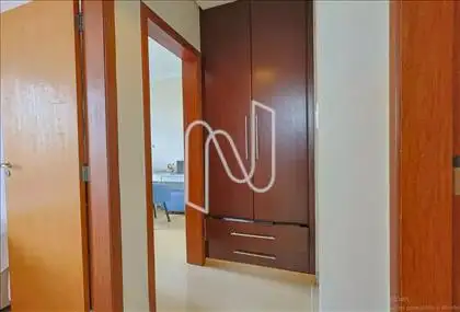 Três quartos com armários, piso em laminado de madeira e janelas com venezianas, sendo um quarto suíte com closet. Ar-condicionado em todos os quartos.