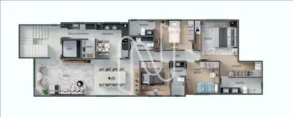 - 04 quartos, sendo 01 suíte máster com closet, 01 suíte e 02 semi-suítes