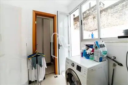 Espaço externo com tanque e varal